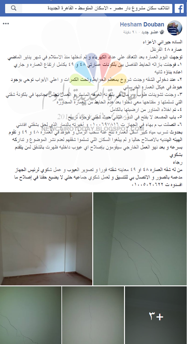 ائتلاف سكان مشروع دار مصر للاسكان المتوسط بالقاهرة الجديدة المنشورات فيسبوك