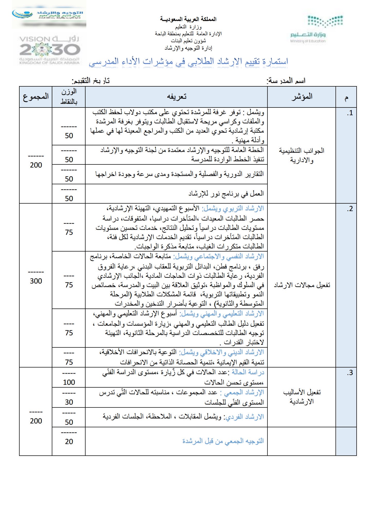 ملتقى الإرشاد الطلابي Sur Twitter استمارة تقييم الإرشاد الطلابي في مؤشرات الأداء المدرسي الإرشاد الطلابي Https T Co 1e7faoiozq