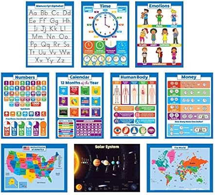 10 ملصقات حائط تعليمية للاطفال خريطة الولايات المتحدة الأمريكية خريطة العالم جسم الإنسان الوقت المواسم التقويم أيام الأسبوع والشهر من العام التعبيرات النظام الشمسي النقود والأرقام 18 X 24 Amazon Ae