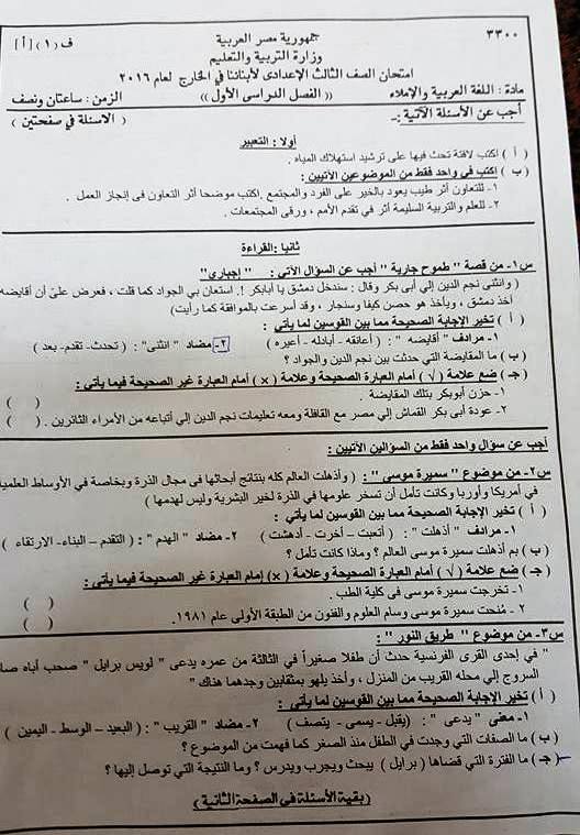 امتحان الشهادة الإعدادية لغة عربية 2019 أبنائنا فى الخارج