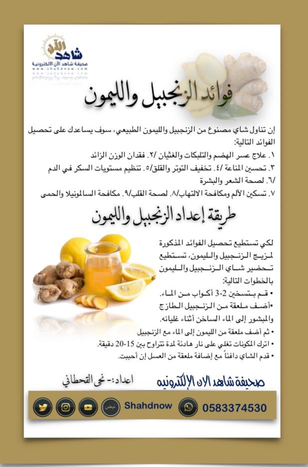 شاهد الآن شاهد الآن فوائد الزنجبيل والليمون إعداد وتصميم نحى القحطاني الزنجبيل الليمون