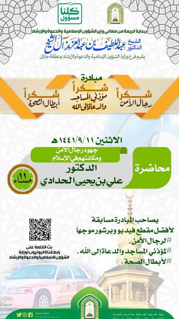 جازان الان On Twitter جهود رجال الأمن ومكانتهم في الإسلام محاضرة ينظمها فرع وزارة الشؤون الإسلامية بمنطقة جازان الليلة يقدمها د علي بن يحيى الحدادي عبر قناة موقع الوزارة باليوتيوب في تمام الساعة 11 مساءا