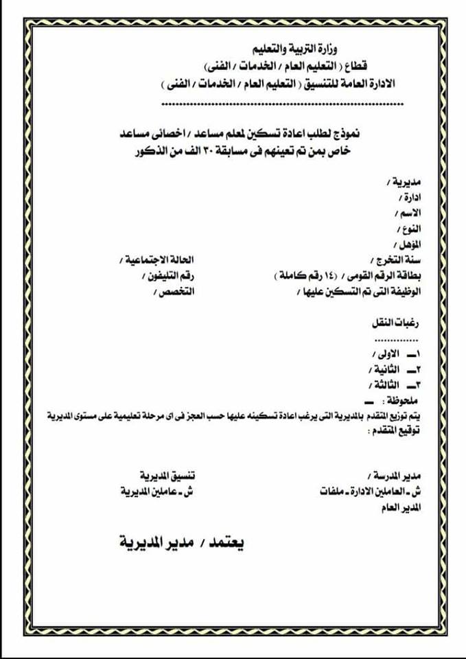 التعليم تفتح باب التقديم لعودة المعلمين المغتربين لمحافظاتهم وننشر نموذج نقل المعلمين المغتربين بالمحافظات ليوم 30 ابريل 2017