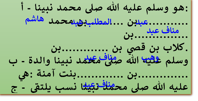 اسجل في المستطيلات ما يلي نسب النبي صلى الله عليه وسلم مولده موقع اسألني